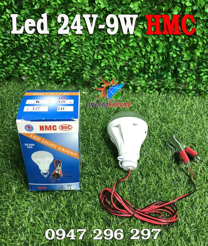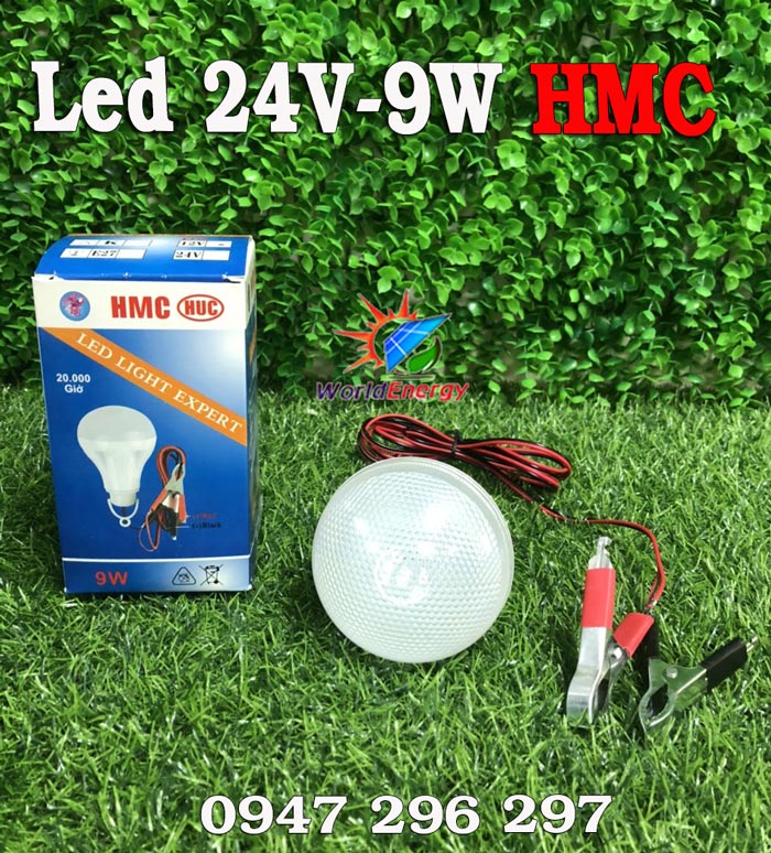 Bóng đèn LED 24v – 9W HMC đuôi dây đầu kẹp cá sấu dài 1.2m tiện dụng để kết nối với bình ắc quy, vỏ nhựa cứng PP, tản nhiệt bằng nhôm tăng tuổi thọ cho bóng.