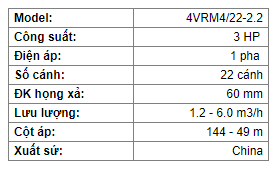 Máy bơm hỏa tiễn 4 inch cánh nhựa VERATTI 4VRM4/16-1.5 2HP