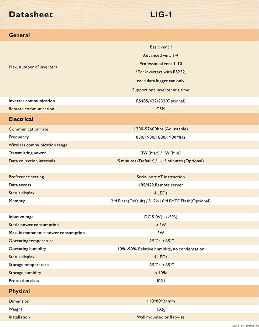 * Thông số kỹ thuật Thiết bị giám sát tập trung Sofar (Inverter Logger)